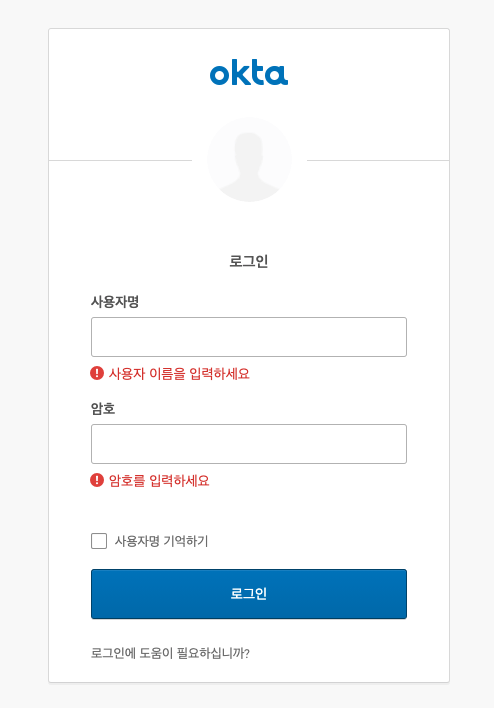 한번 실행해서 /login에 접근하게 되면, Okta 로그인 페이지가 redirect 되어진다.